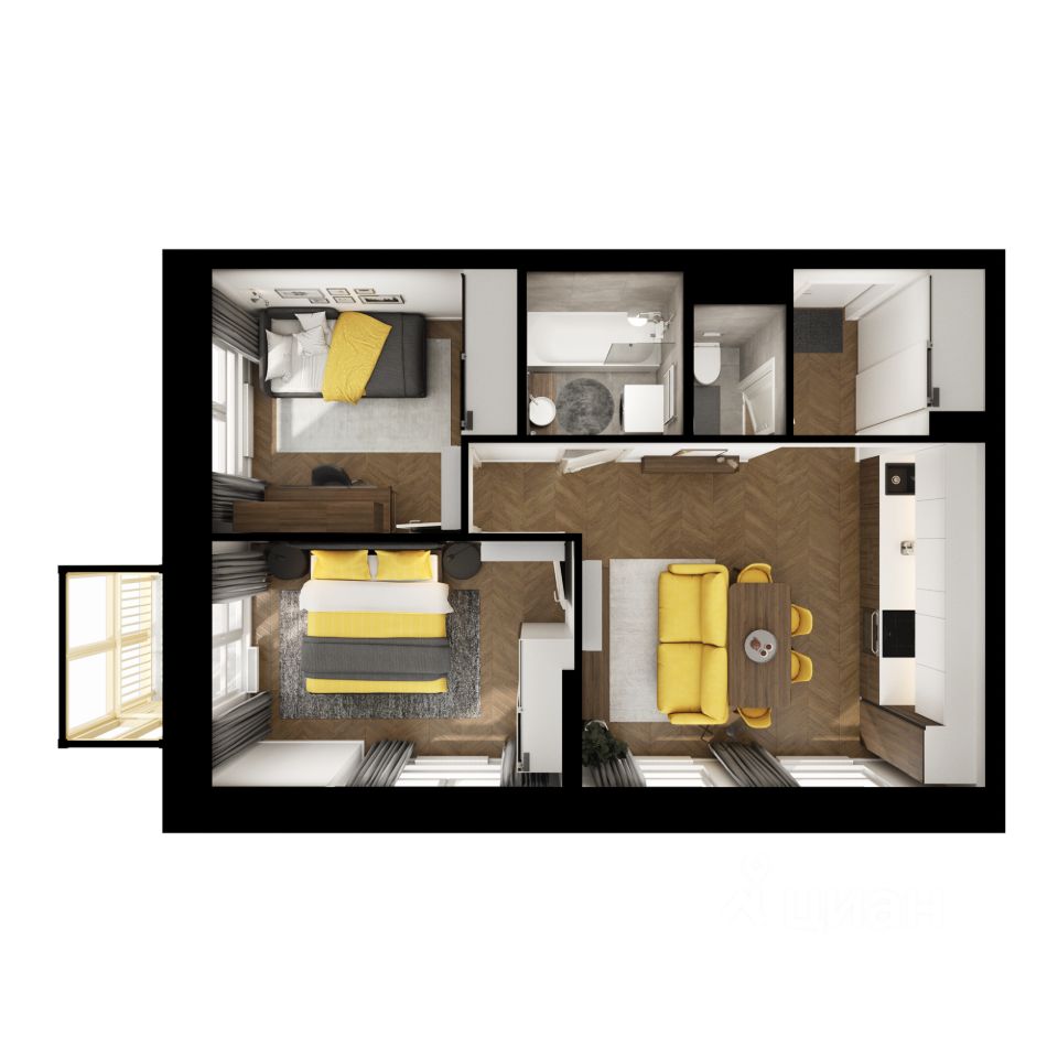 В квартирах тоже будет много солнечного света за счёт балконов и больших окон. Вы получите ключи от квартиры с уже готовой отделкой - можно заезжать и жить.