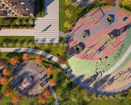 Чтобы жители квартала чувствовали простор и получали больше солнечного света, мы построим дома разной высоты. Во дворах появятся уютные парки с детскими площадками и местами для отдыха - здесь можно поболтать с соседями, почитать в тени или позаниматься йогой. Спортивные площадки мы разместим так, чтобы шум от них не мешал жителям.