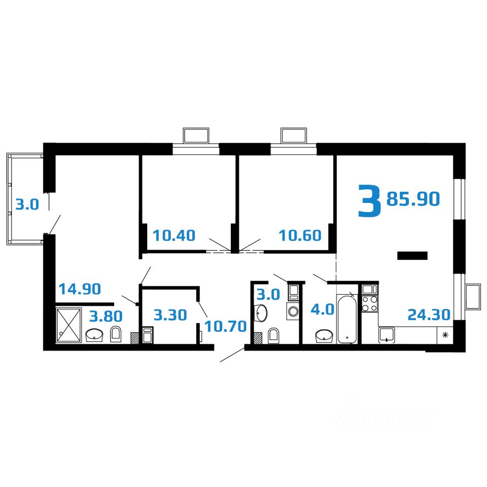 3-комнатная квартира евроформата, 85,9 кв.м. При проектировании планировочных решений в ЖК "2Д Федосеенко" мы исходили из сценариев жизни современной семьи.