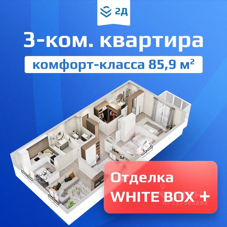 3-комнатная квартира евроформата, 85,9 кв.м. При проектировании планировочных решений в ЖК "2Д Федосеенко" мы исходили из сценариев жизни современной семьи.