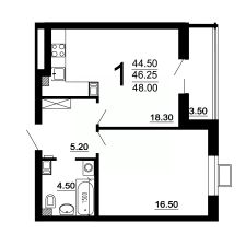 1-комнатная квартира евроформата (46,25 кв.м.) в ЖК "2Д Федосеенко" в Сормовском районе Нижнего Новгорода.