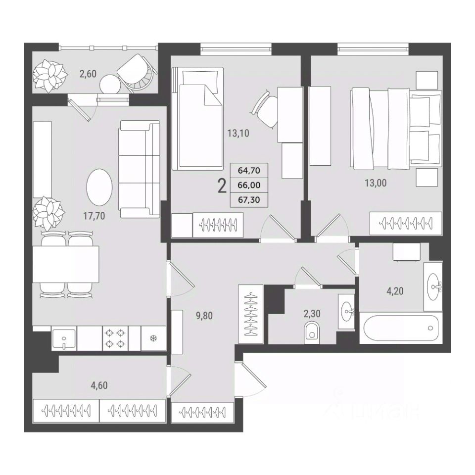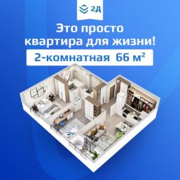 Просторная 2-комнатная квартира евроформата 66 кв.м. в ЖК "2Д Федосеенко".
