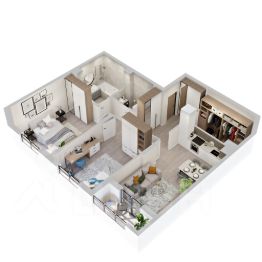 3D-модель в изображениях представлена исключительно в ознакомительных целях. Изображённые отделка, мебель, техника, предметы интерьера, декора и иные элементы оформления квартиры являются иллюстрацией возможного интерьера и не входят в состав приобретаемой квартиры. Подробности в отделе продаж.