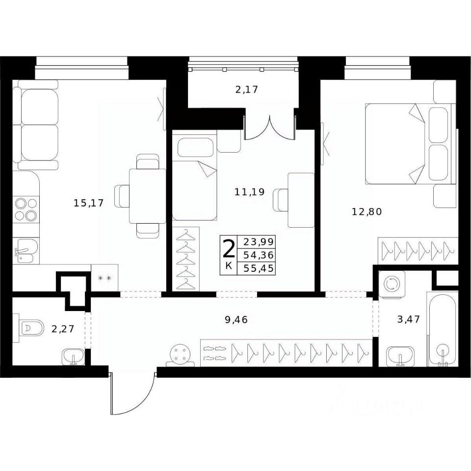 55,45 м²