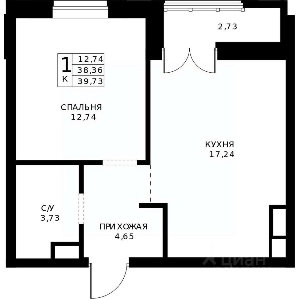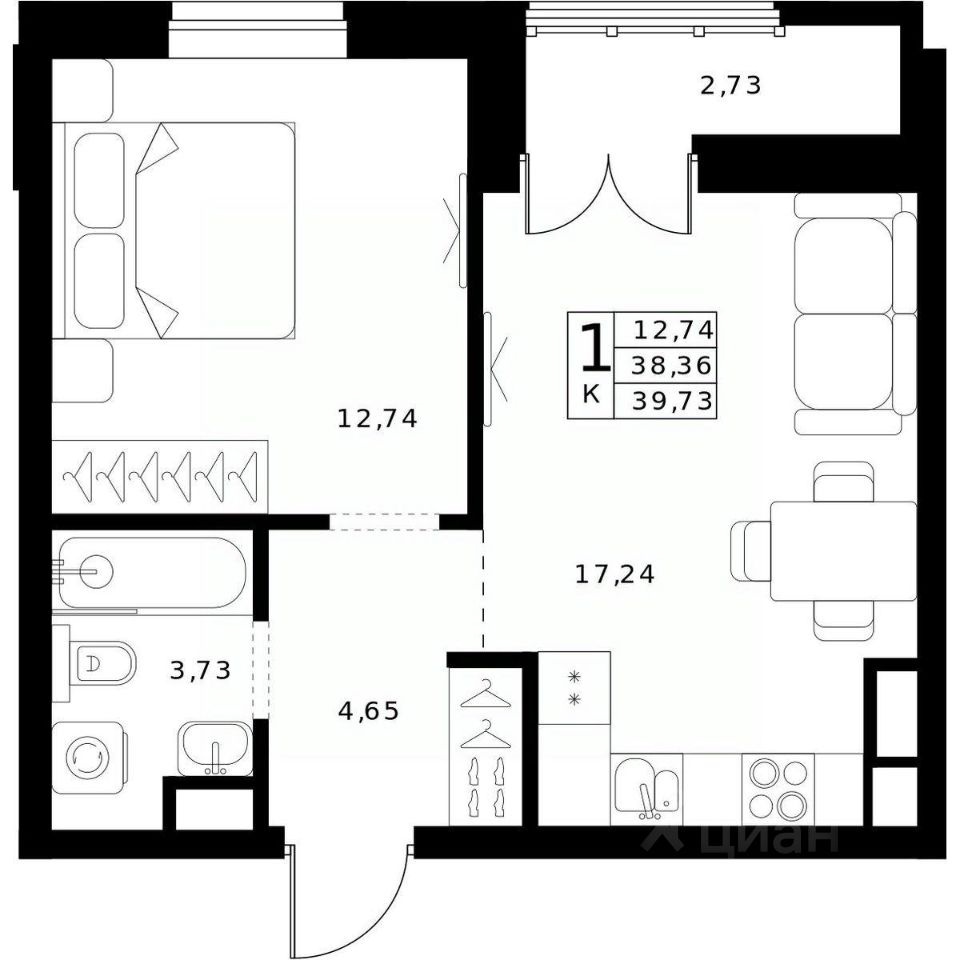 39,73 м²