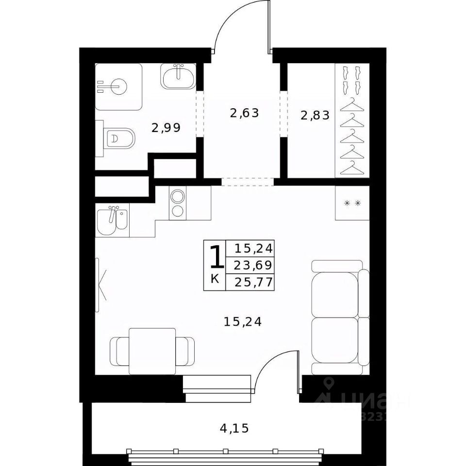 25,77 м²