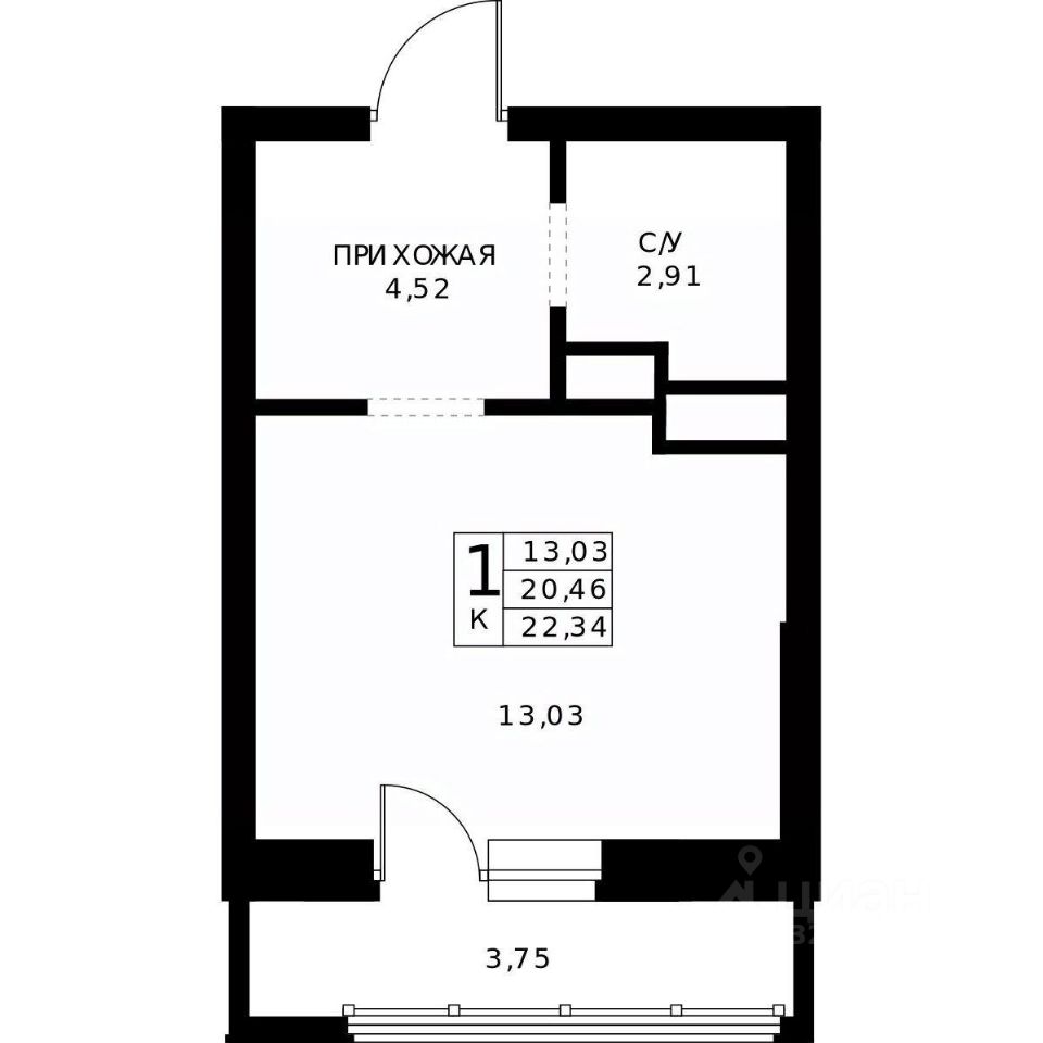 22,34 м²