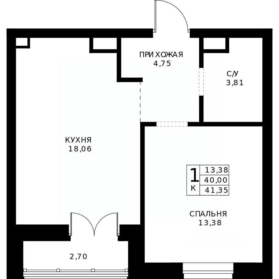13,4 м²