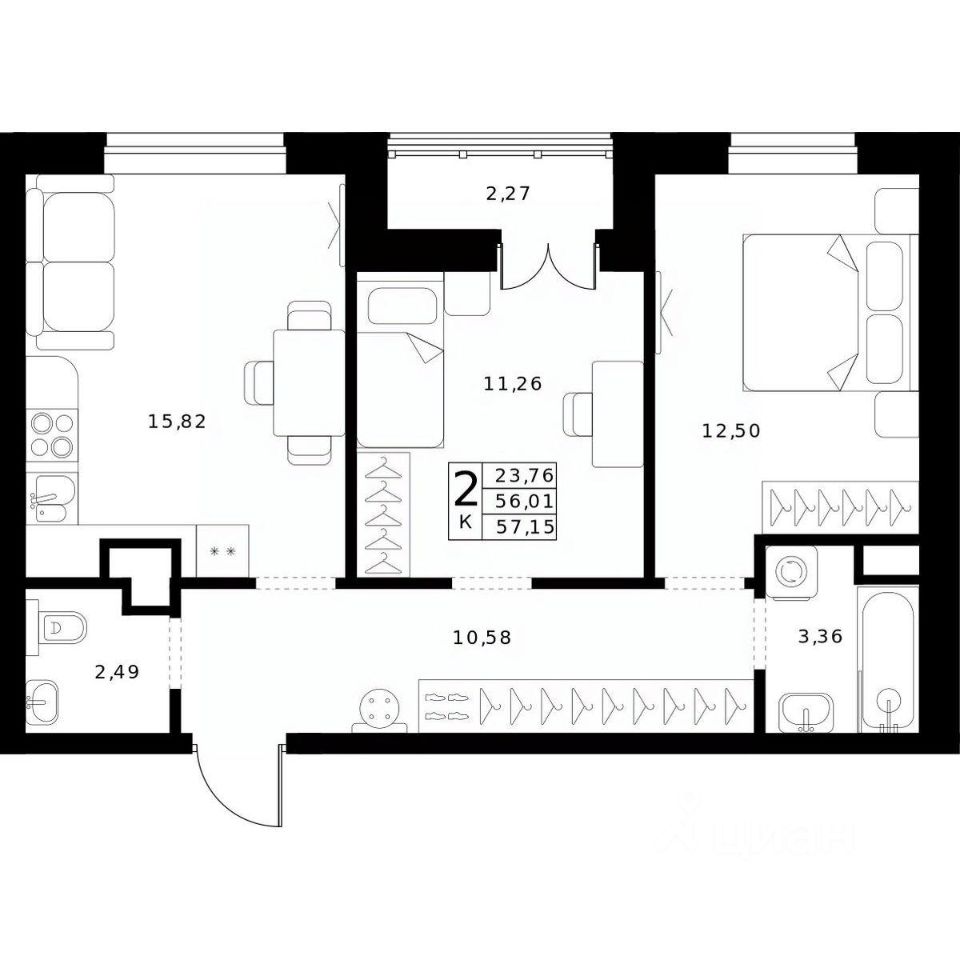 57,15 м²