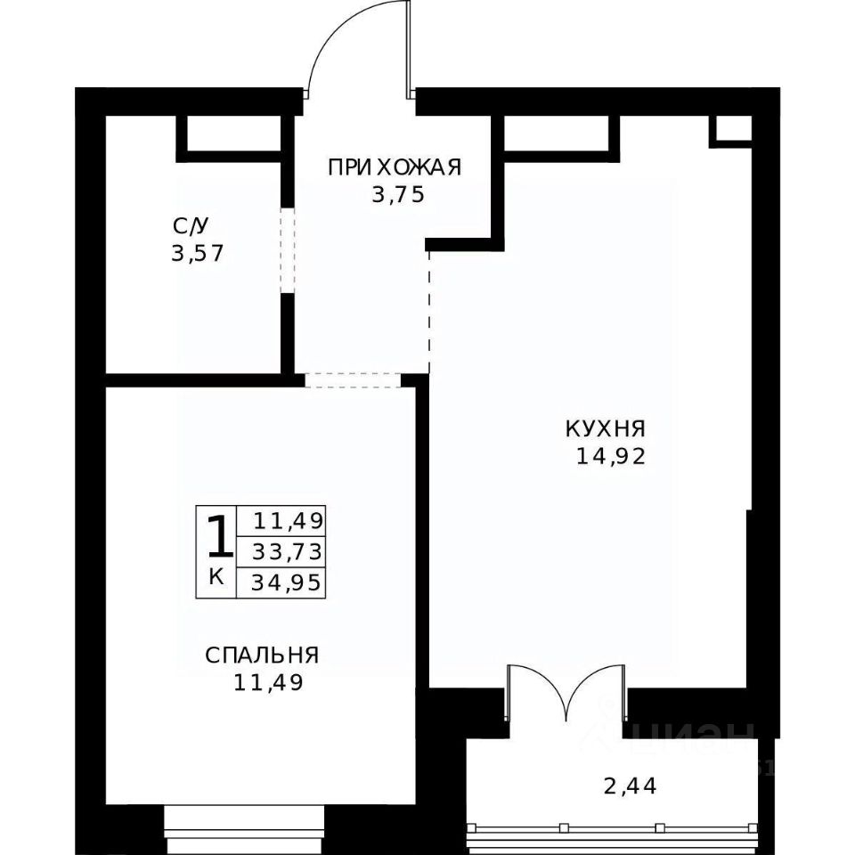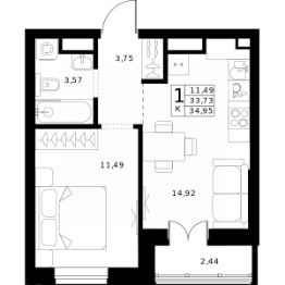 34,95 м²