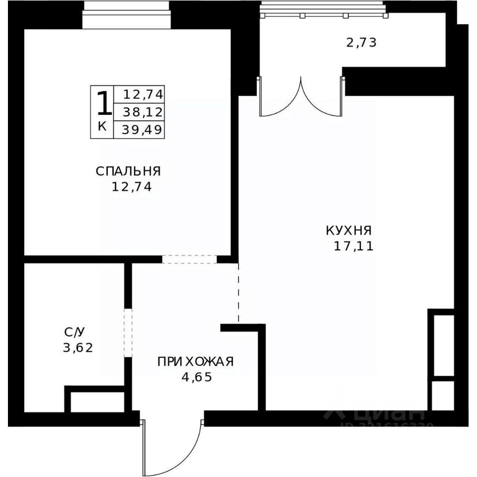 12,7 м²