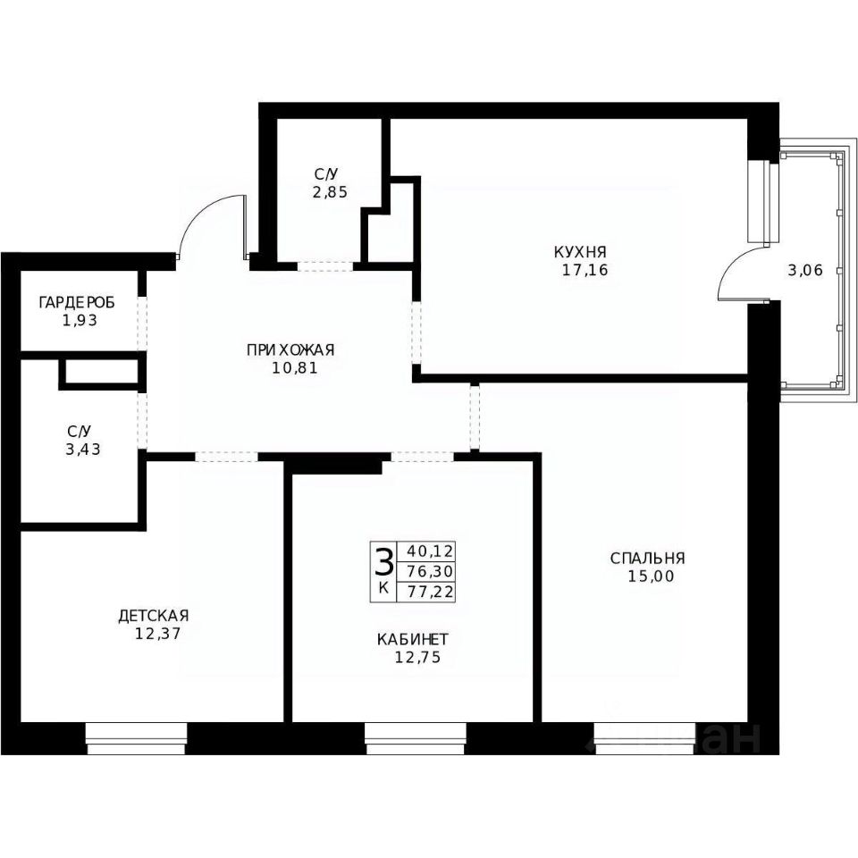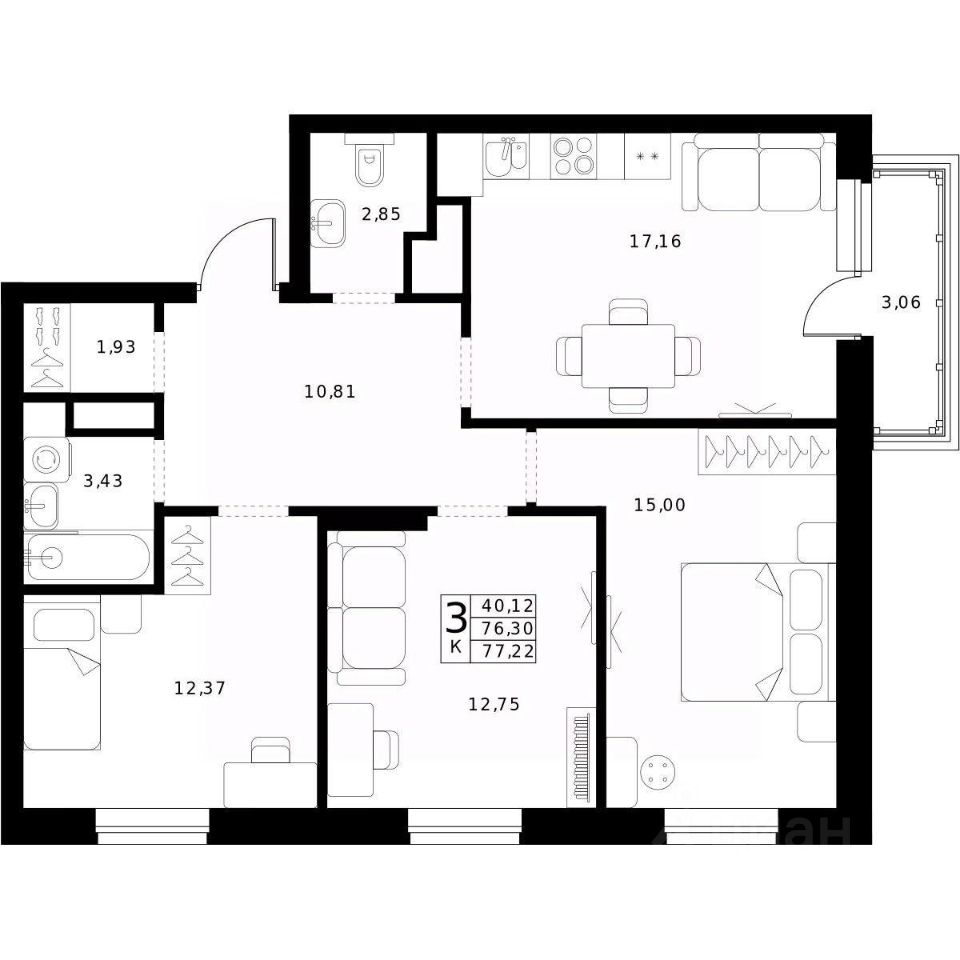 77,22 м²