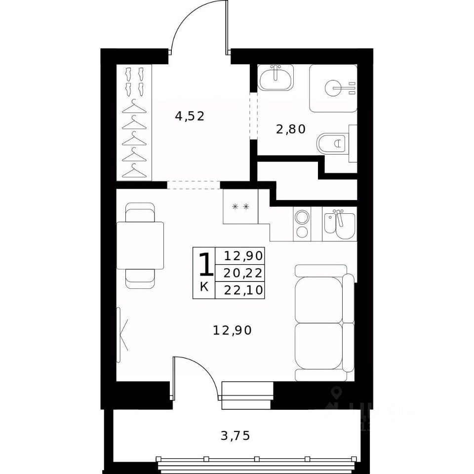 22,1 м²