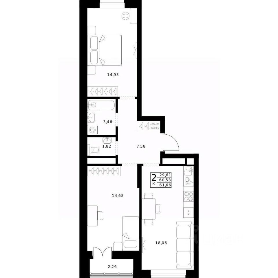 61,66 м²