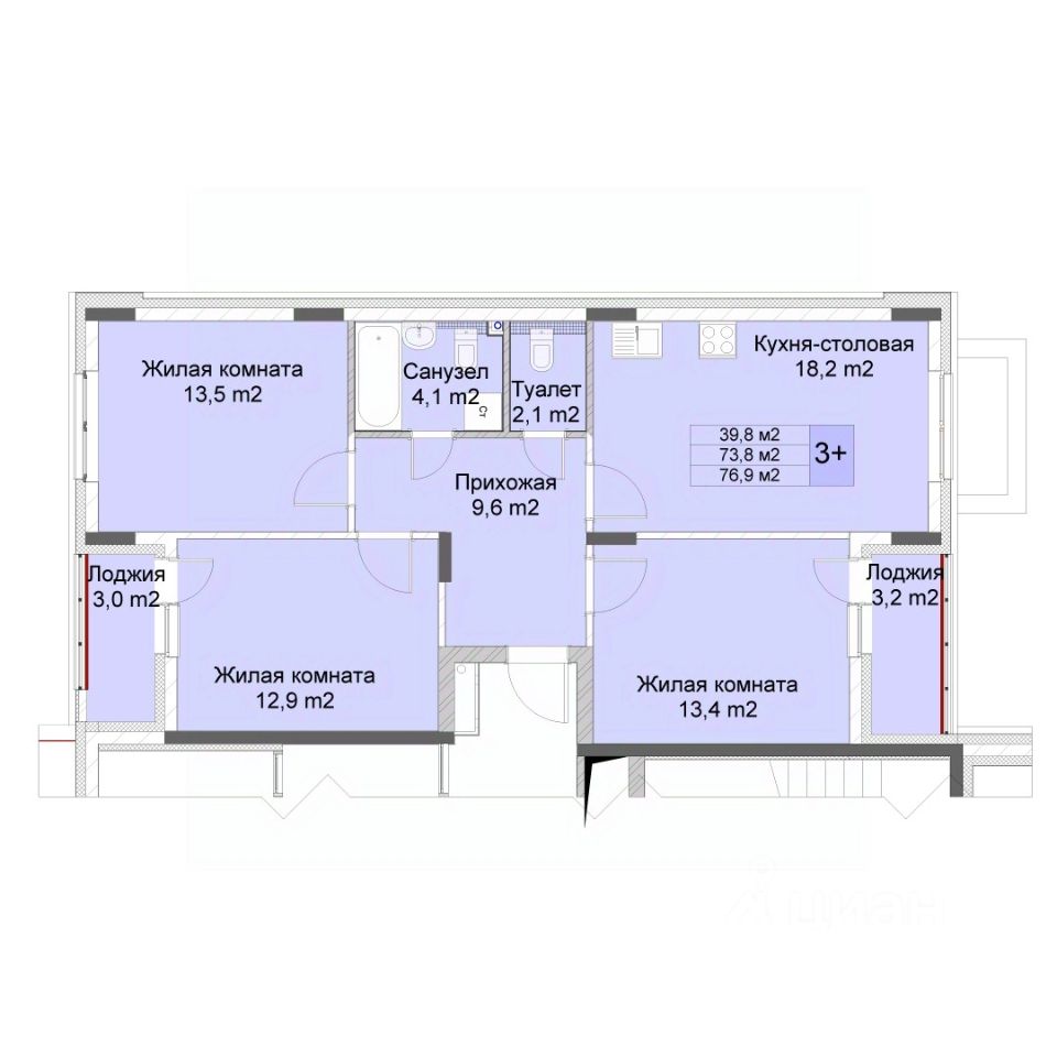 Преимуществами квартиры 6 являются: чистовая отделка под ключ, кухня более 18 кв.м., две лоджии, окна выходят на разные стороны. Срок сдачи - 2 кв. 2028г.