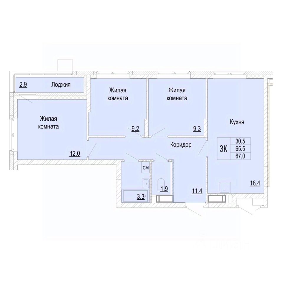 В продаже трехкомнатная квартира (планировка евро-формата), расположенная в доме 14 (по генплану) в ЖК "Новая Кузнечиха".