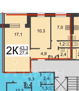 43,3 м²