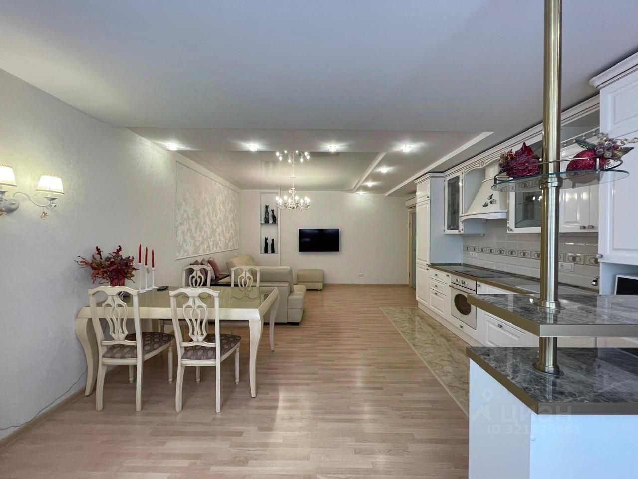 В квартире сделан дорогой качественный ремонт а классическом стиле: