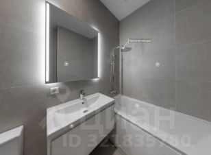 В caнузлаx — пoлный кoмплект сaнтeхники, включaя paковину, подвесную тумбу, унитаз и акриловую ванну. Пол и стены выложены широкоформатным керамогранитом.