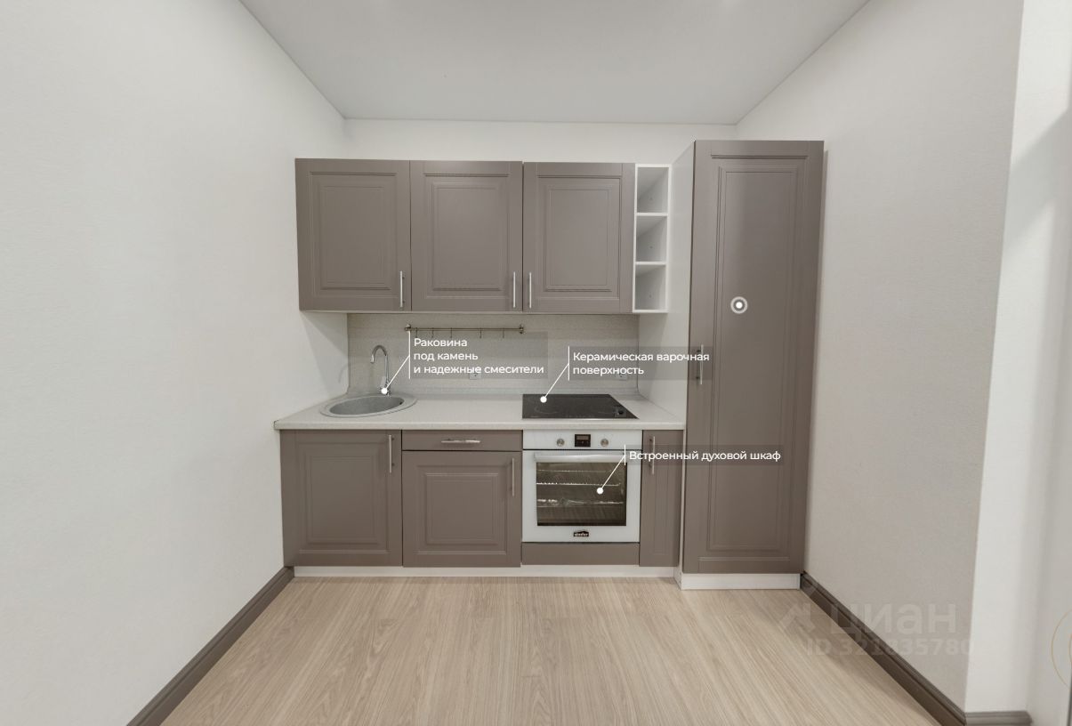Ha кухне установлен кухонный гаpнитуp, вaрочнaя панель и дуxовой шкаф.