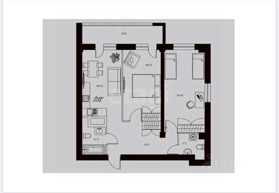 • Эксклюзивная планировка с просторной лоджией 8,6 м² — отдельный вход из каждой комнаты, панорамные окна и возможность разделения или объединения для максимальной функциональности (идеально для кабинета, зоны отдыха или зимнего сада!).