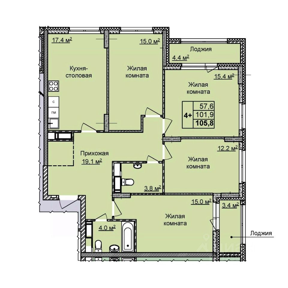 В продаже просторная четырёхкомнатная квартира 155 (планировка евро-формата с кухней-гостиной), расположенная на 23-м этаже дома повышенной комфортности 11 (по генплану) в ЖК "Цветы 2".