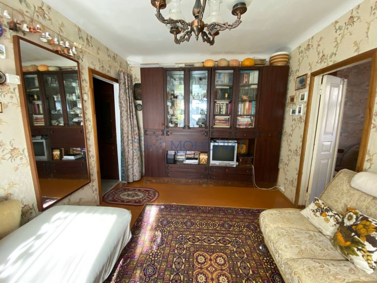 О квартире: Двухкомнатная квартира расположена на 1 этаже двухэтажного жилого дома. Меньшая комната разделена перегородкой на две маленьких комнаты.