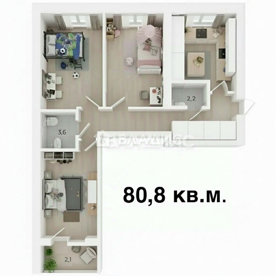 - Общая площадь: 80,8 кв.м.