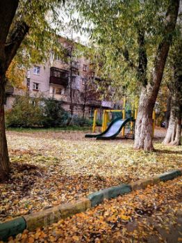 Тихий, зеленый двор с небольшой детской площадкой.