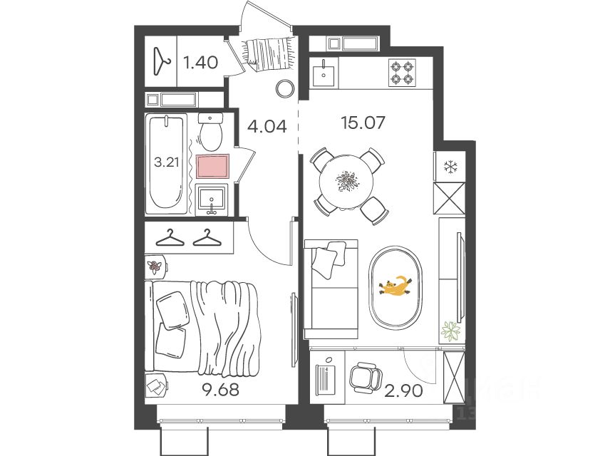 Жилая площадь24,8 м²
