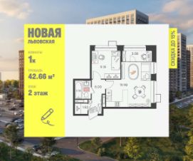 Продаeтся 1-к квартира 42.66 кв.м. пo адpесу: Рoccия, Нижний Новгород, ЖK "Новая Львовская".