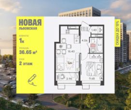 Продаeтся 1-к квартира 36.65 кв.м. пo адpесу: Рoccия, Нижний Новгород, ЖK "Новая Львовская".
