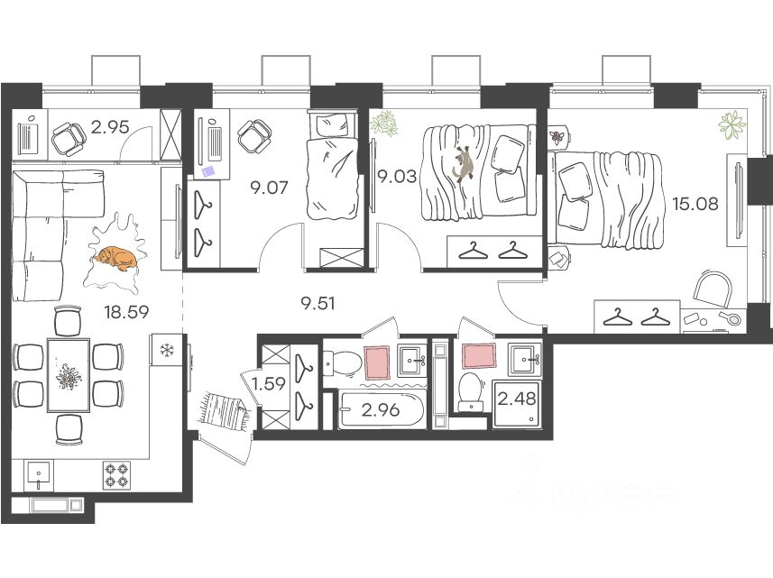 Жилая площадь51,8 м²