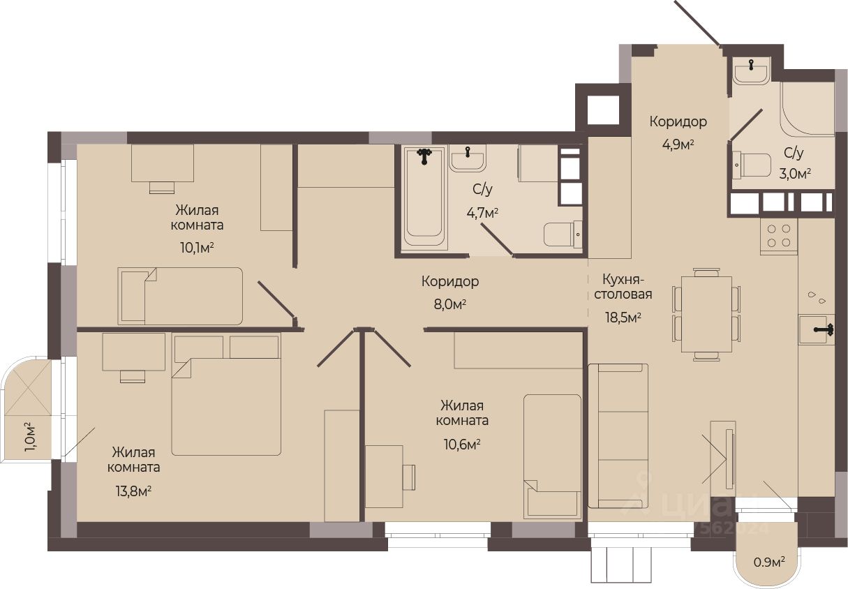 Площадь кухни18,5 м²