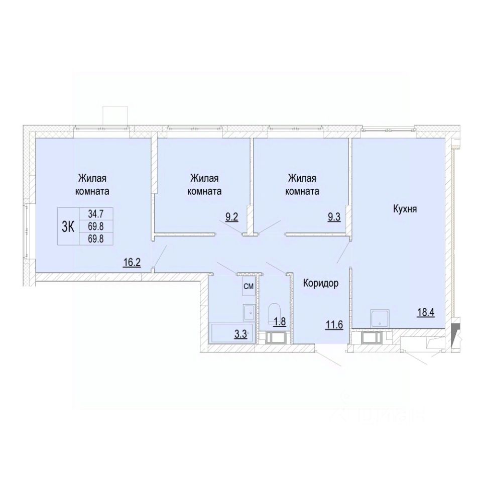 Общая площадь69,8 м²