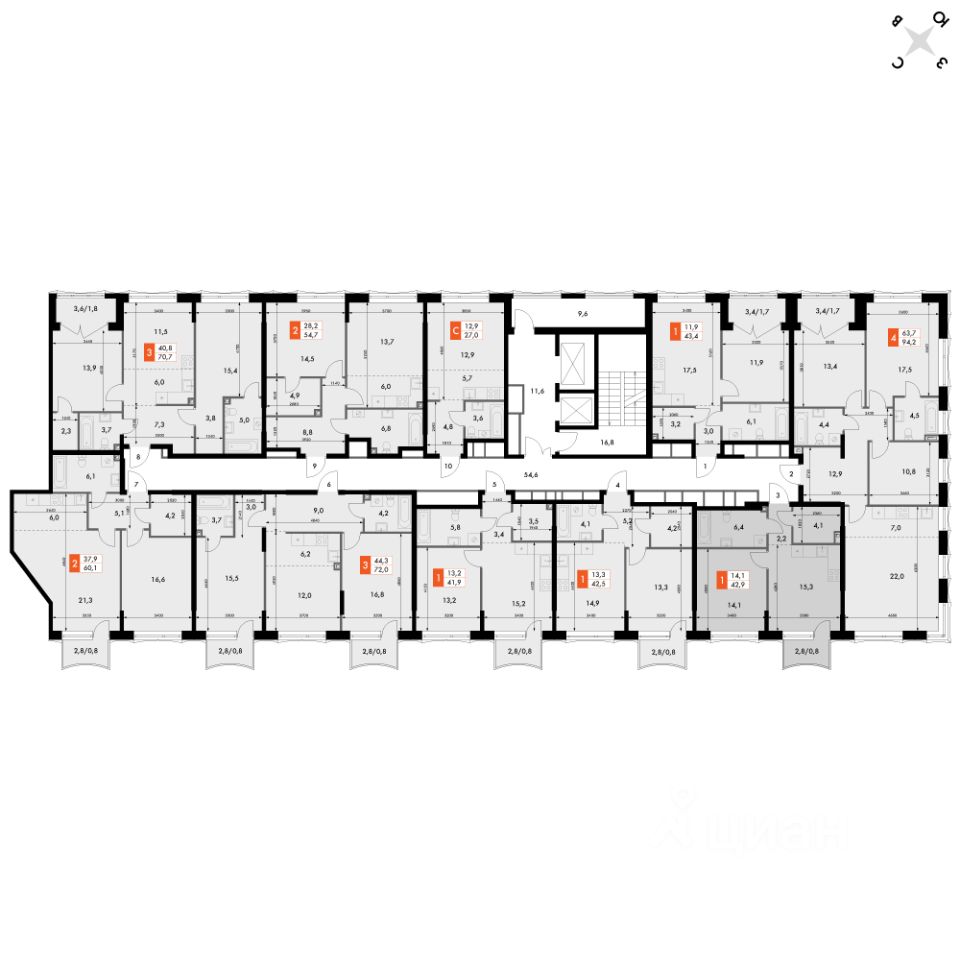 Продаётся 1-к квартира номер 317 общей площадью 42.9 кв.м. на 3-м этаже 10 этажного дома. Отделка Whitebox. Цена с учётом скидки!