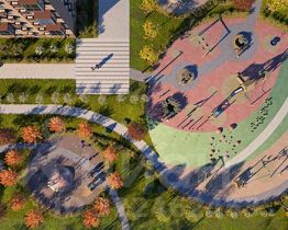 Чтобы жители квартала чувствовали простор и получали больше солнечного света, мы построим дома разной высоты. Во дворах появятся уютные парки с детскими площадками и местами для отдыха - здесь можно поболтать с соседями, почитать в тени или позаниматься йогой. Спортивные площадки мы разместим так, чтобы шум от них не мешал жителям.