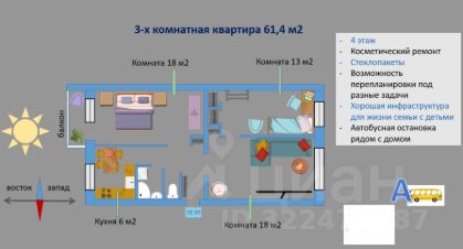 Покупателю остаются кухня, шкафы и другая мебель по согласованию.