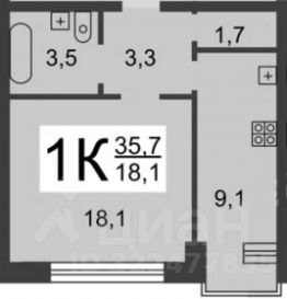 Светлая квадратная комната 18,1 кв.м. Гардеробная или прихожая под ваши потребности. Санузел совмещенный