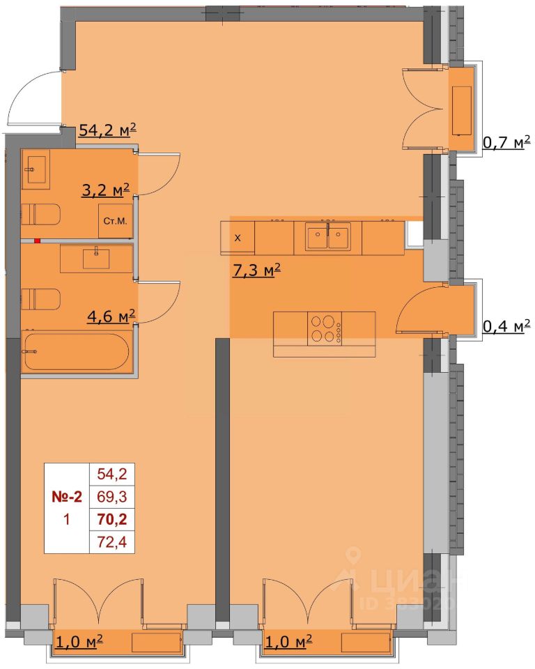 Общая площадь70,2 м²