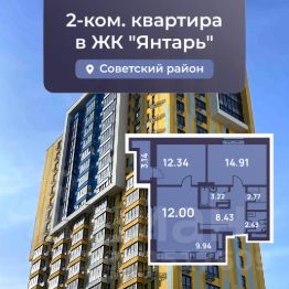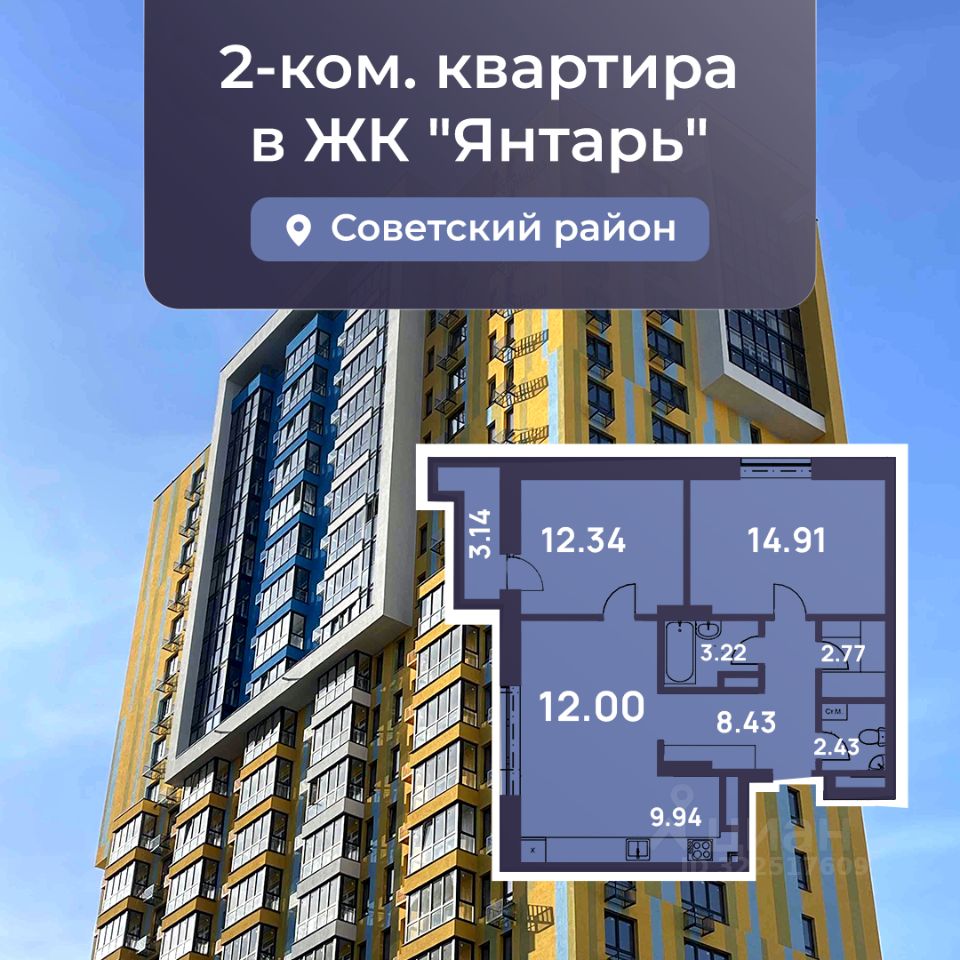 Продается просторная 2-комнатная квартира 69,18 кв.м. евроформата в новостройке ЖК "Янтарь".