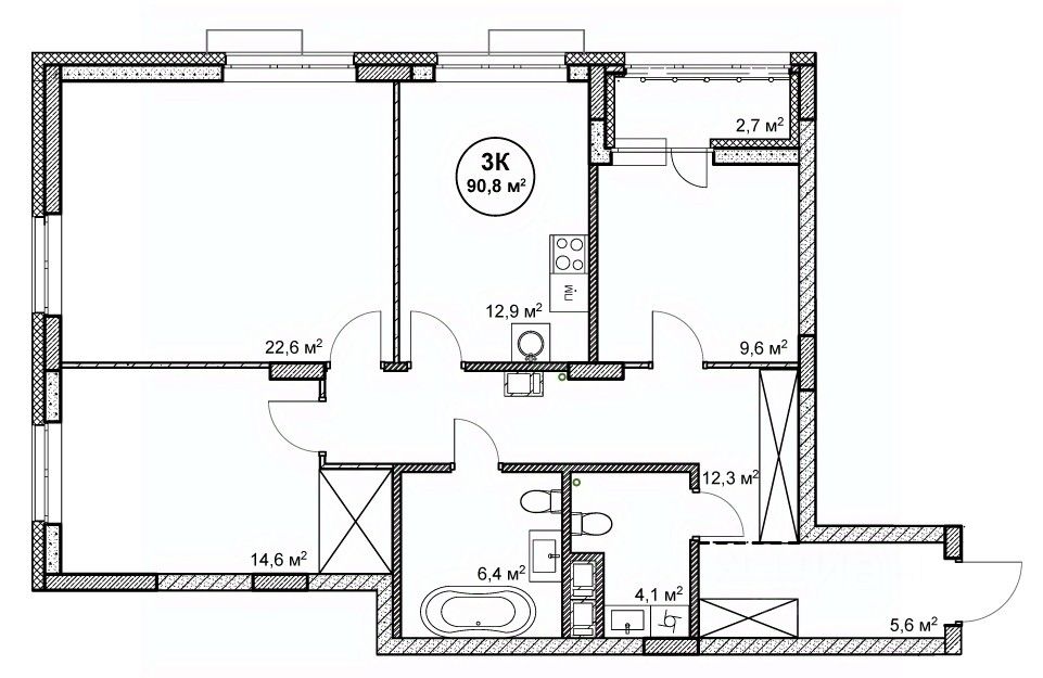 90,8 м²
