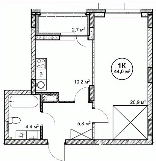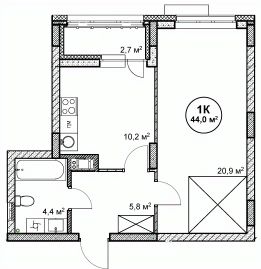 44 м²
