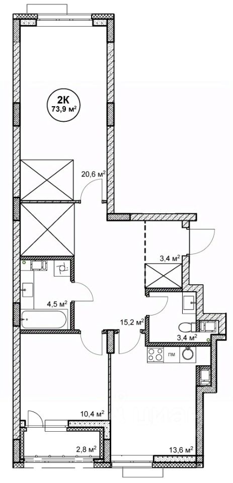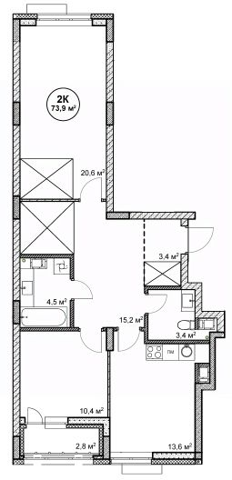 73,9 м²