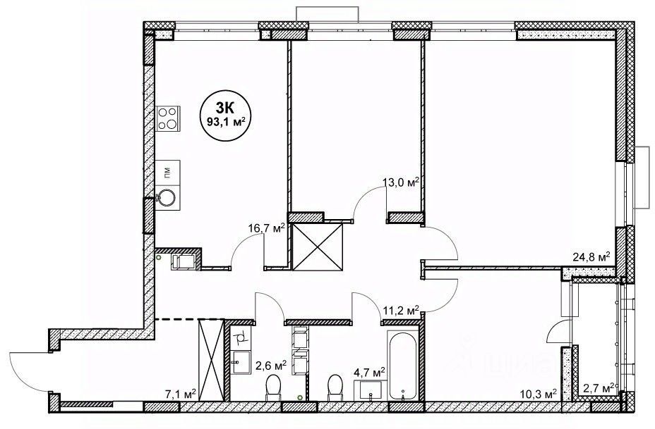 93,1 м²