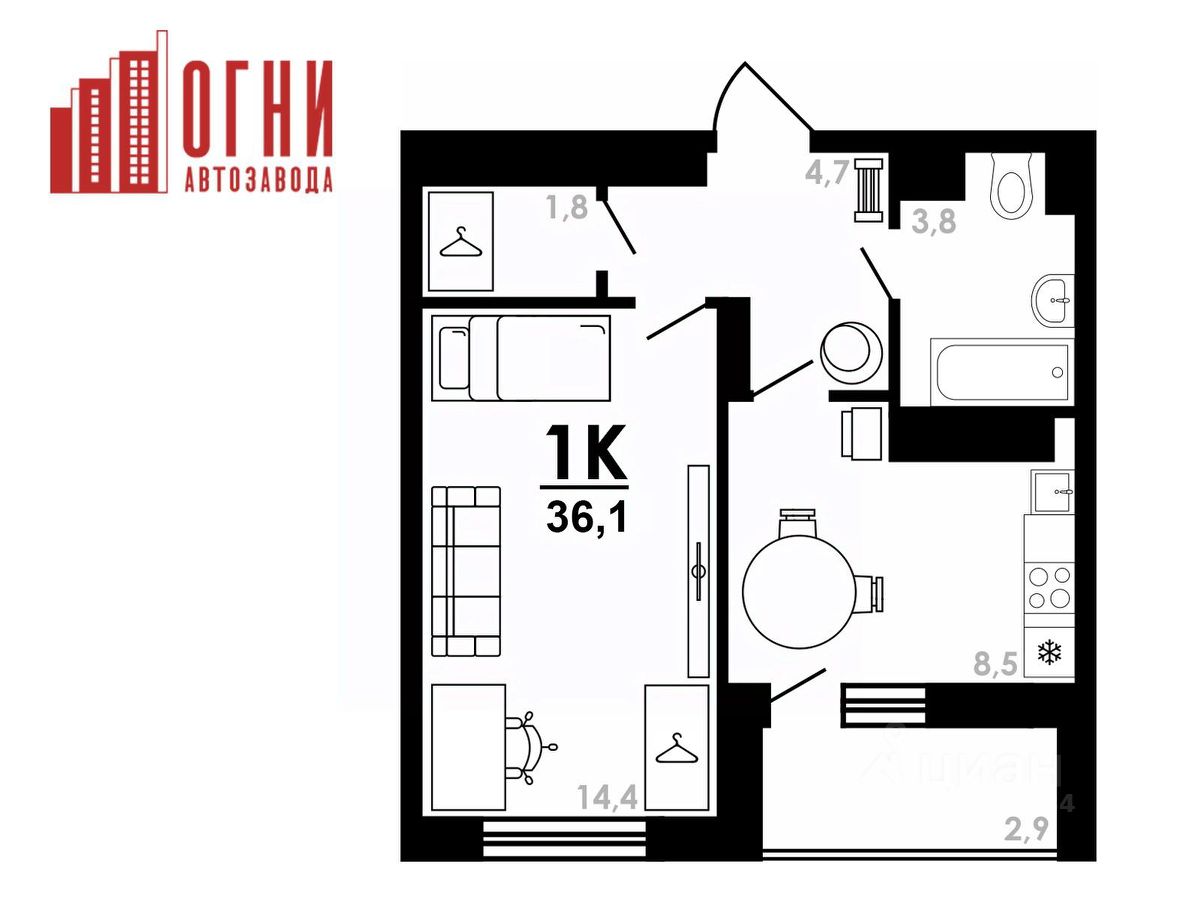 Продаётся 1-комнатная квартира в строящемся доме (дом 4), срок сдачи: IV-кв. 2026, общей площадью 36.1 кв.м., на 15 этаже. "Огни Автозавода" - новый современный жилой комплекс, где вы найдете квартиру своей мечты.