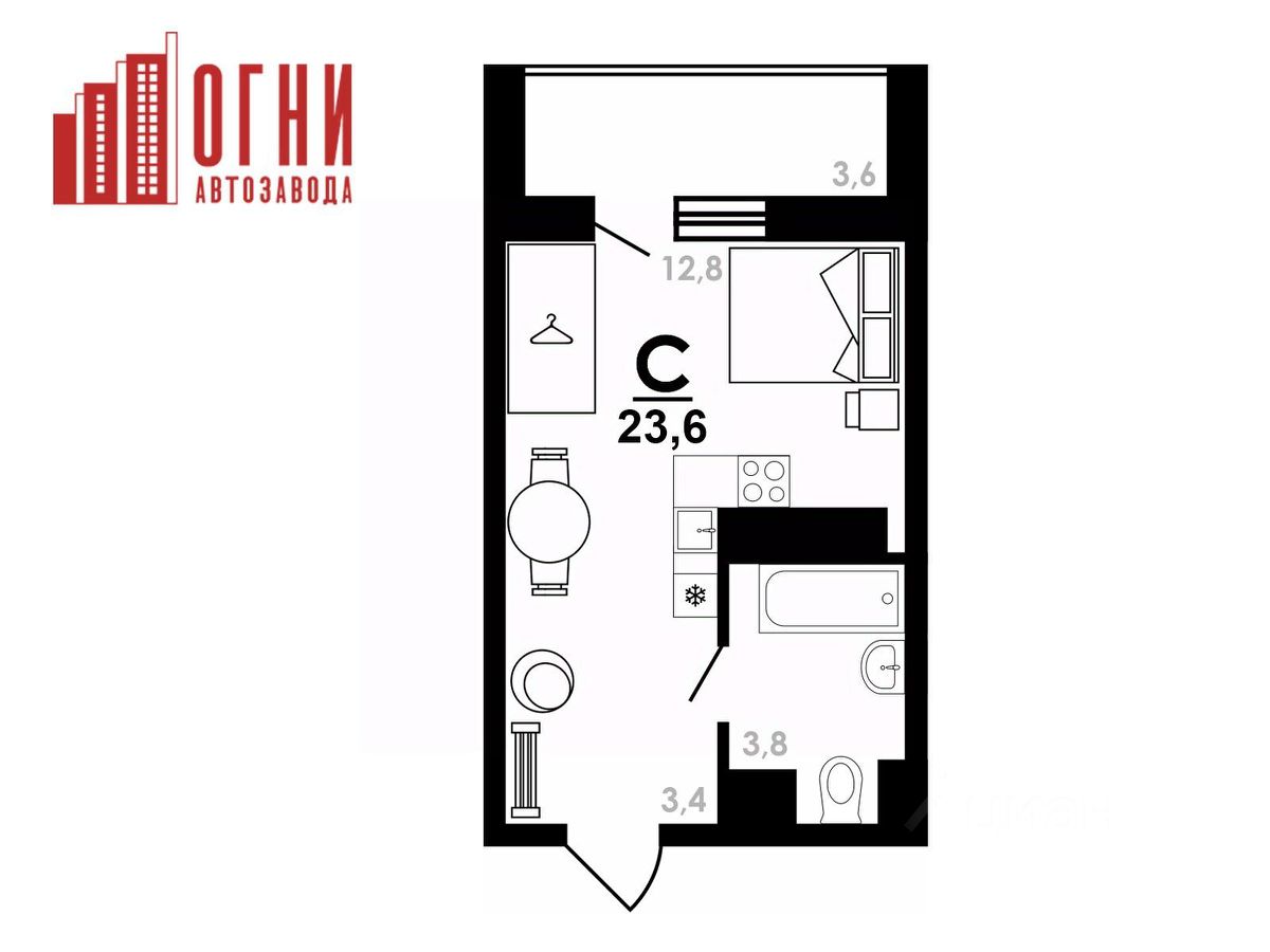 Продаётся студия в строящемся доме (дом 4), срок сдачи: IV-кв. 2026, общей площадью 23.6 кв.м., на 16 этаже. "Огни Автозавода" - новый современный жилой комплекс, где вы найдете квартиру своей мечты.