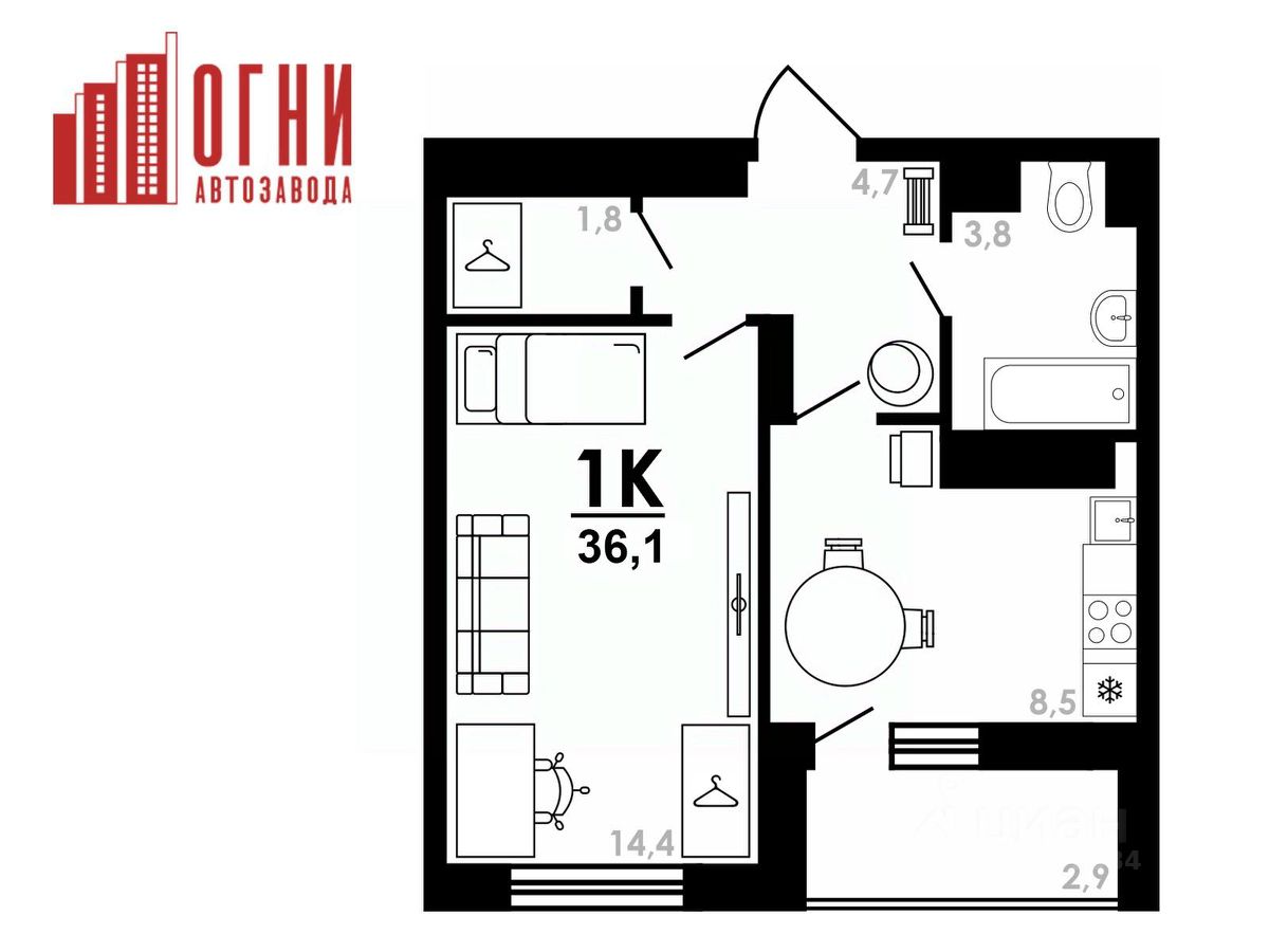 Продаётся 1-комнатная квартира в строящемся доме (дом 4), срок сдачи: IV-кв. 2026, общей площадью 36.1 кв.м., на 17 этаже. "Огни Автозавода" - новый современный жилой комплекс, где вы найдете квартиру своей мечты.