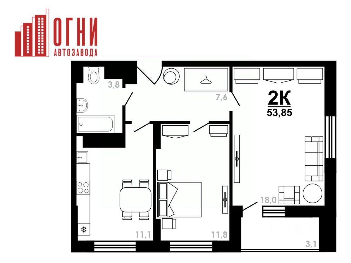 Продаётся 2-комнатная квартира в сданном доме (дом 8к4), срок сдачи: IV-кв. 2024, общей площадью 53.85 кв.м., на 19 этаже. "Огни Автозавода" - новый современный жилой комплекс, где вы найдете квартиру своей мечты.