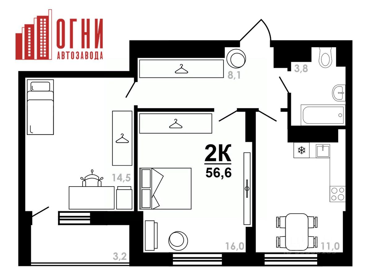 Продаётся 2-комнатная квартира в строящемся доме (дом 4), срок сдачи: IV-кв. 2026, общей площадью 56.6 кв.м., на 23 этаже. "Огни Автозавода" - новый современный жилой комплекс, где вы найдете квартиру своей мечты.